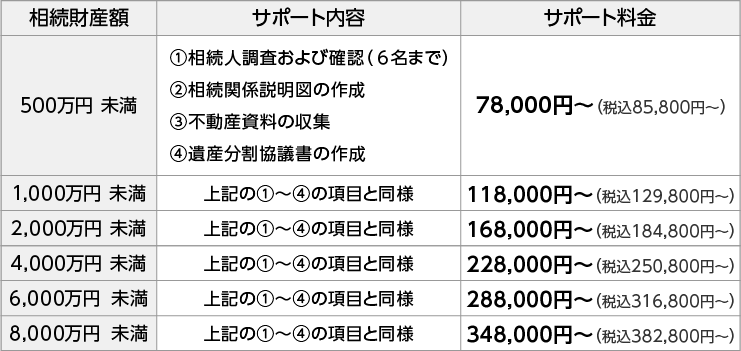 - 遺産分割協議書作成:40,700円~ ※相続手続一式における協議書作成業務