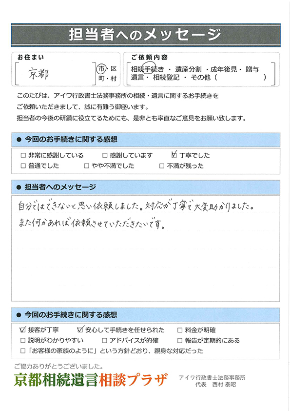 自分ではできないと思い依頼しました。対応が丁寧で大変助かりました。